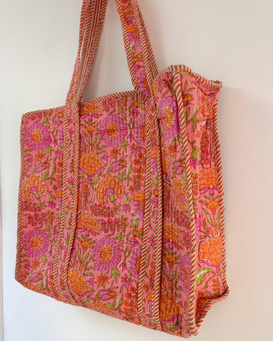 Pink and orange l Big tote bag in quilted cotton