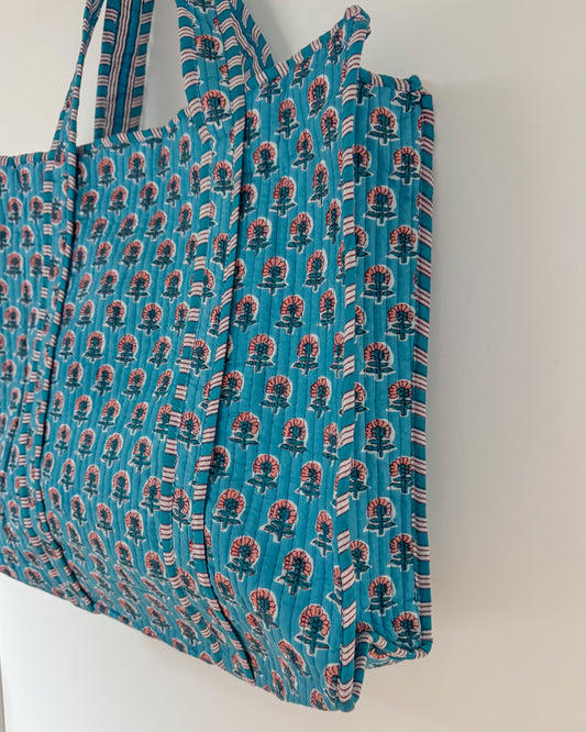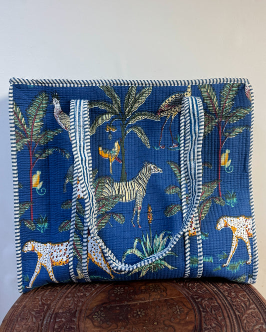 Blue jungle l Big tote bag in quilted cotton