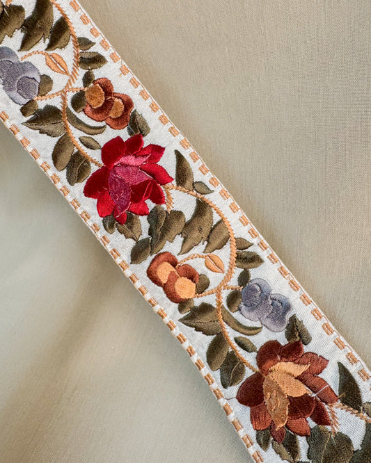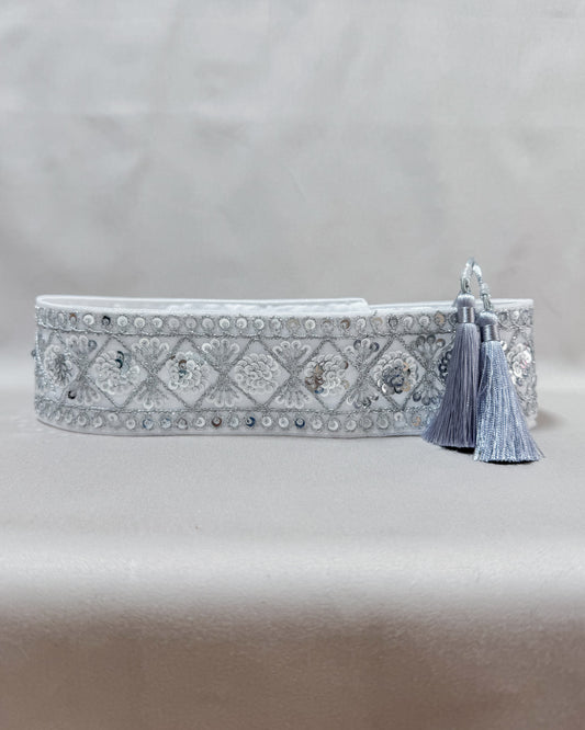 Bohemiam silver belt with embroidered flowers and tassels