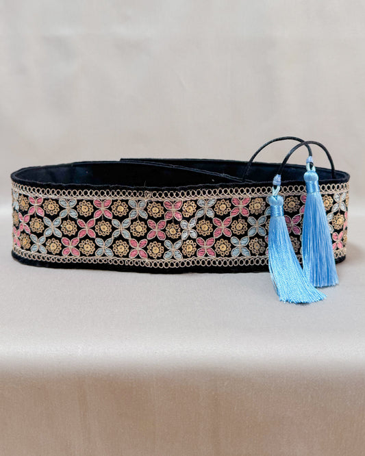 Bohemian embroidered obi belt with tassels