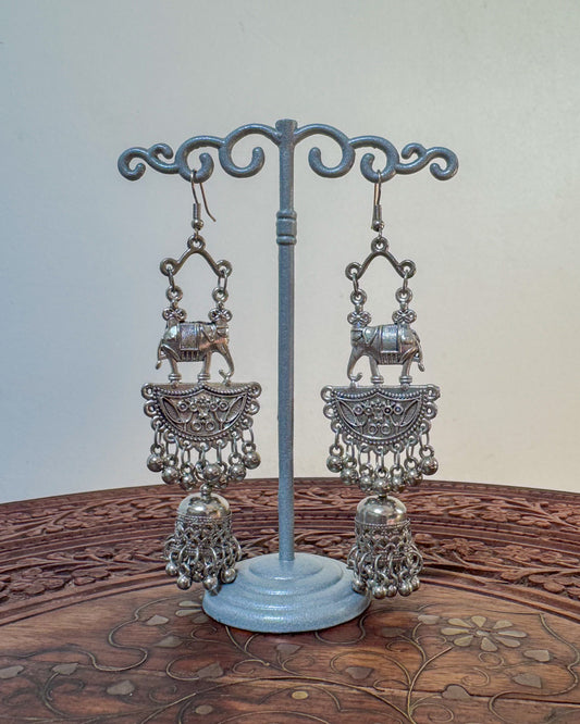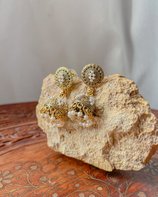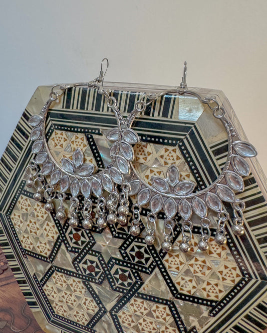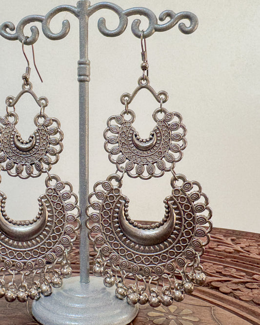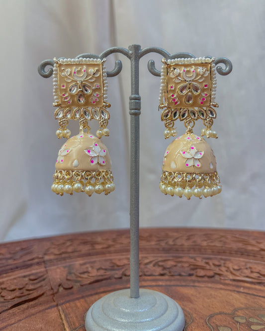 MOON LIGHT PINK Big Golden Bohemian Earrings with Hand-Painted Floral Detail
