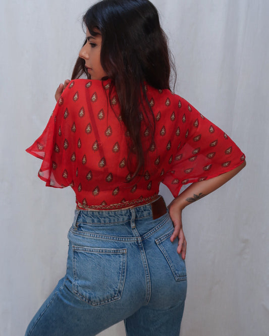 Bandhani Wrap Top – Hot Pink & Deep Blue Saree Edition