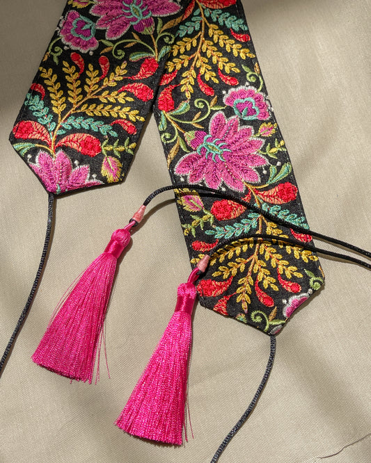 Ceinture bohème brodée - Velours noir