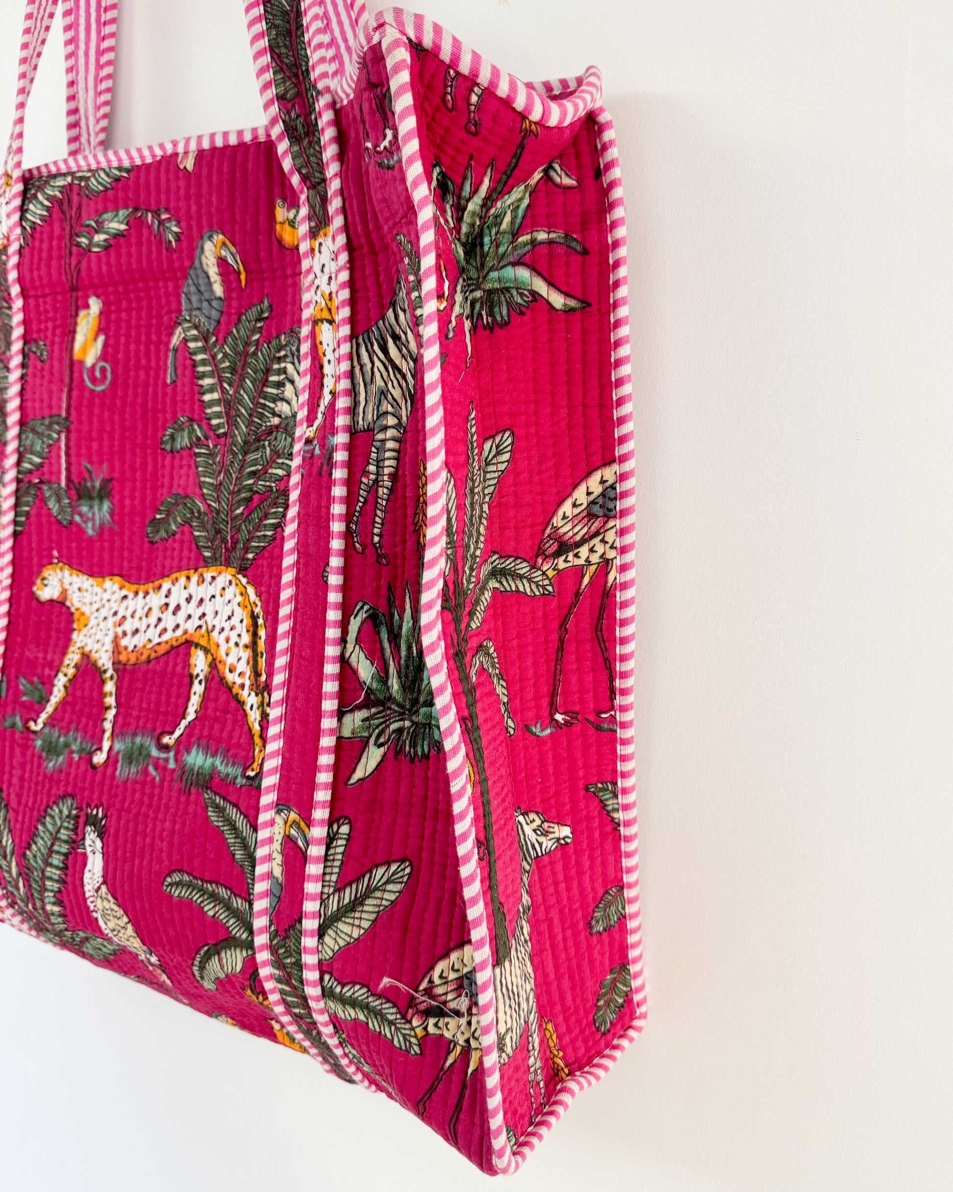 Pink jungle l Big tote bag in quilted cotton